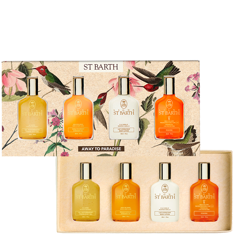 Лимитированный набор AWAY TO PARADISE отправляет в полёт мысли и чувства. 4 продукта LIGNE ST BARTH подарят вам идеально ровный загар, красивую, гладкую кожу… и ощущение свободного парения!